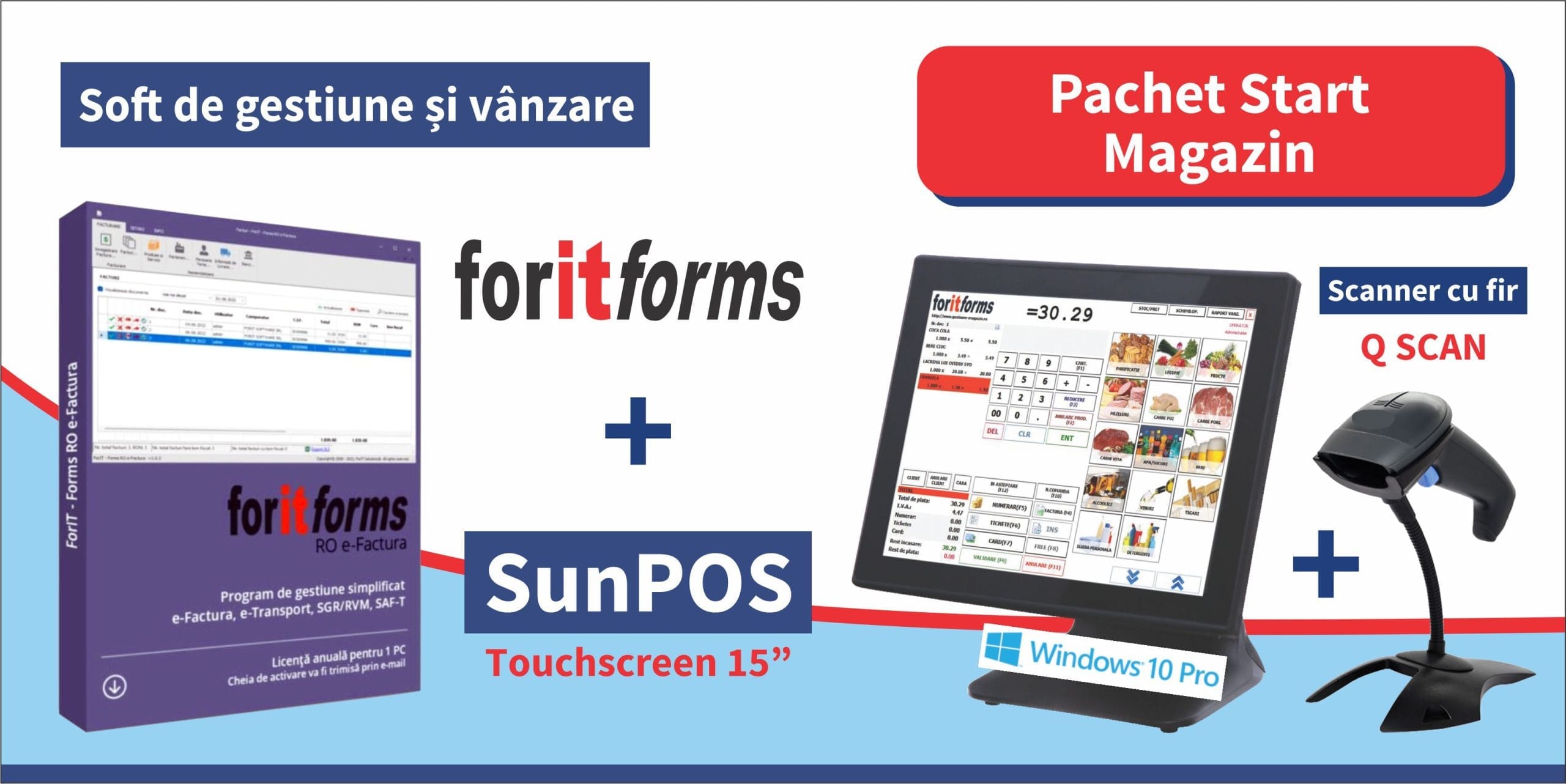 Modernizați-vă complet magazinul cu soluția noastră integrată pentru magazine . Acest pachet promoțional ” START MAGAZIN “ include tot ce aveți nevoie pentru a vinde eficient și a fi 100% conform cu noile cerințe legislative: e-Factura, e-Transport, SGR și SAF-T. Beneficiați de un SUNPOS All-In-One, software de gestiune și vânzare si scanner 2D. Este cea mai rapidă și sigură cale către digitalizarea afacerii dumneavoastra.